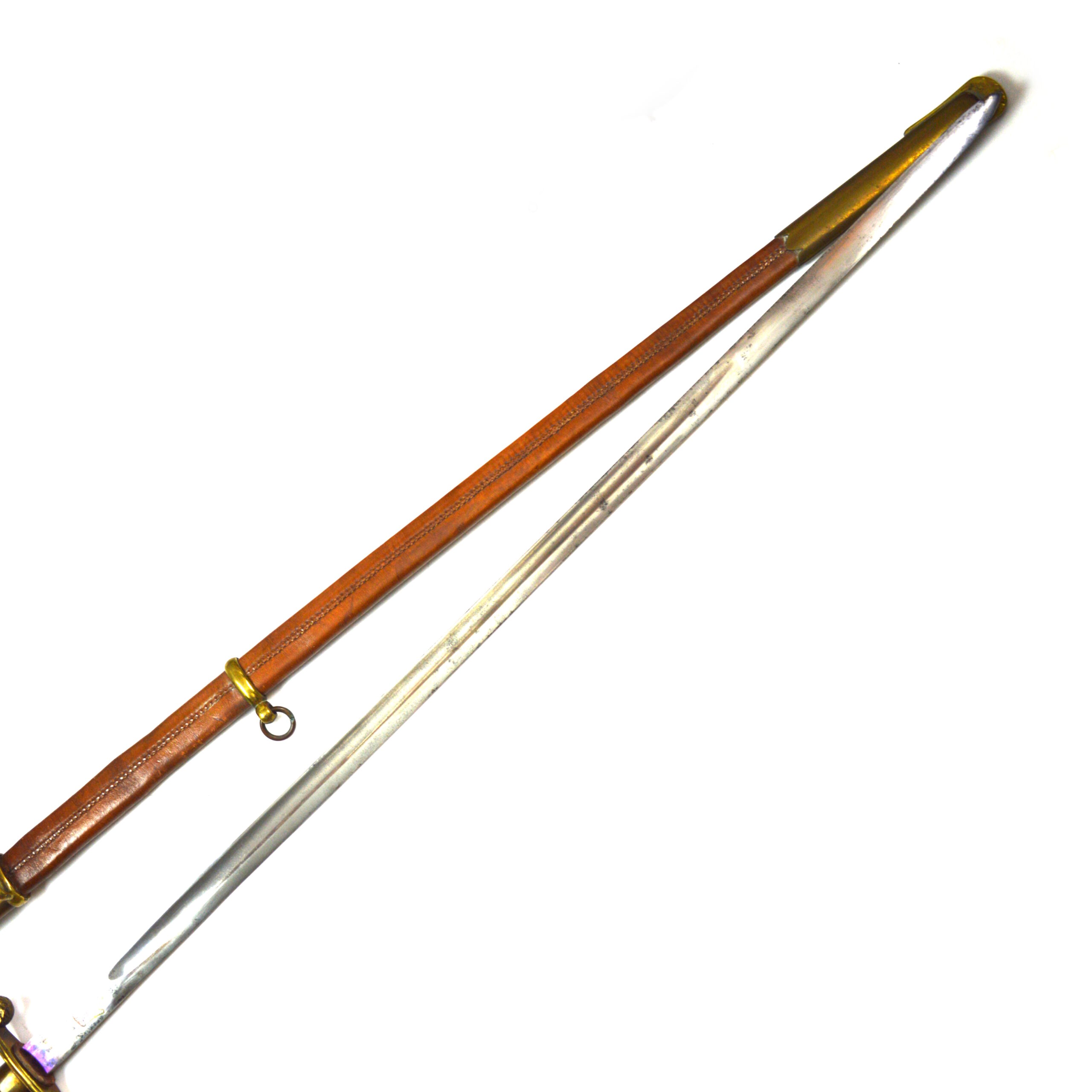 Persian Infantry Officer’s Sword with scabbard, a Middle Eastern military example reflecting the influence of both traditional Persian design and later European-style officer patterns adopted during the 19th and early 20th centuries. Such swords are associated with the armed forces of Persia, particularly during periods of military modernisation.
