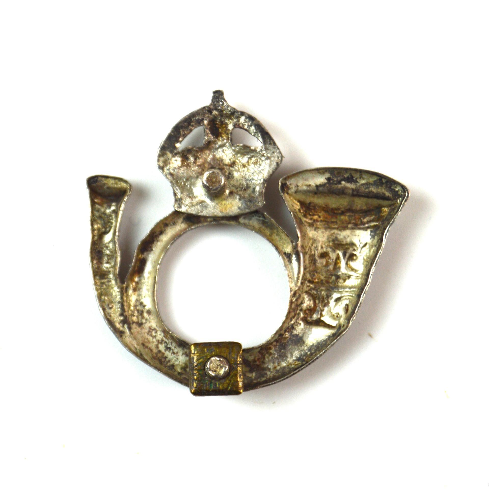 Rifle Volunteers (1901-08 Pattern) Officer’s Universal Pouch Badge, King’s Crown. Silver plate badge with north-south bolt fittings on the reverse. The crown seems to have been added in place of an earlier crown