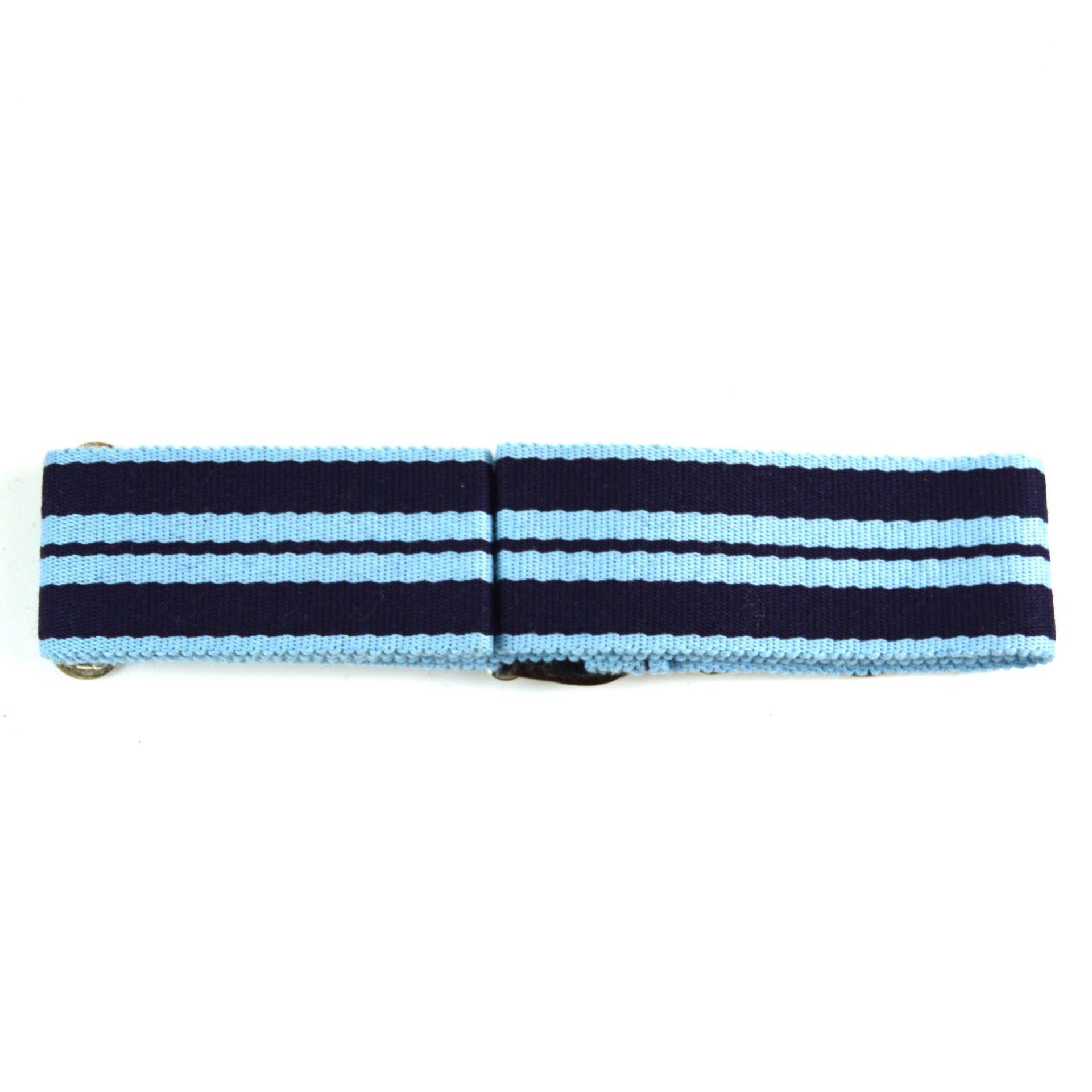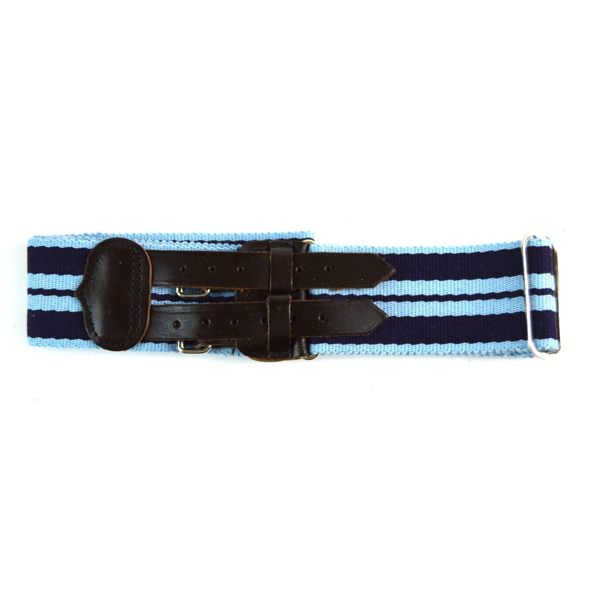 Royal Army Education Corps Leather Straps Stable Belt. Dark blue bordered by 2 narrow light blue stripes, with 2 wider stripes in the centre.