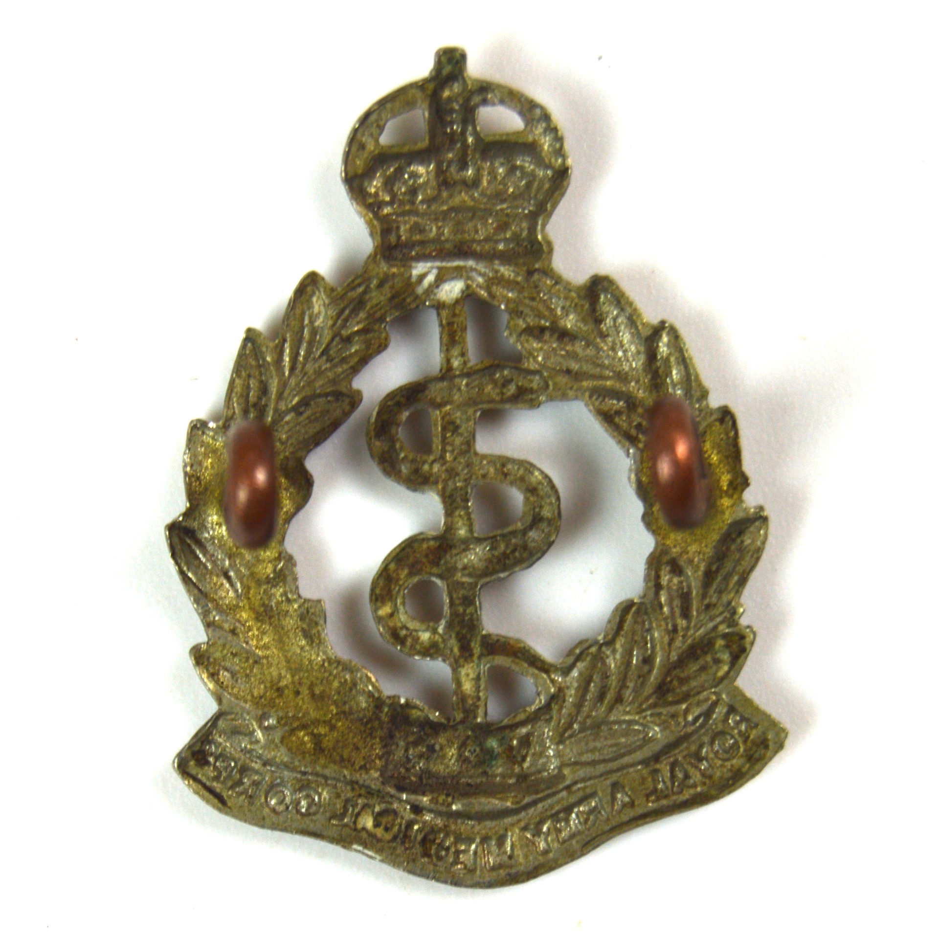 An original and scarce collar badge for the Royal Army Medical Corps (Volunteers), dating from the short-lived 1903–1908 pattern period before the Haldane Reforms.