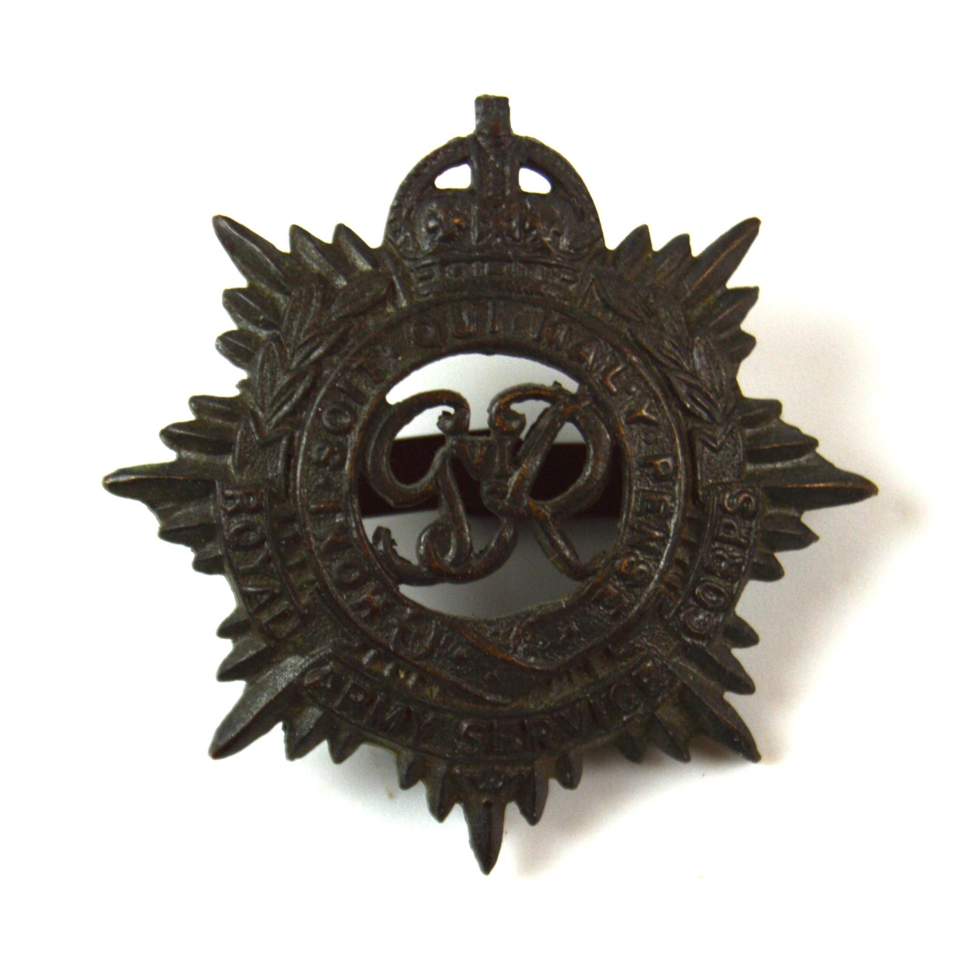 An authentic cap badge. Royal Army Service Corps (1936-52 Pattern) OSD Cap Badge, Original. A collectable piece of British military insignia.