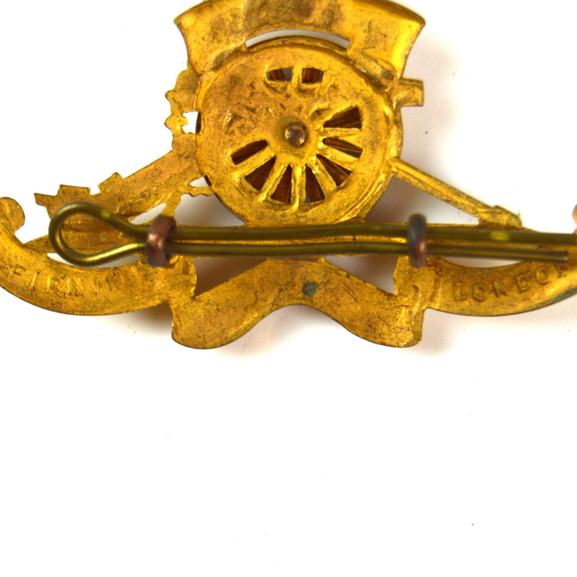 Royal Artillery Gilt Officer’s Cap Badge, Pre-1952, King’s Crown with moving wheel. East-west eyed lugs on the reverse with the marking “Firmin, London”