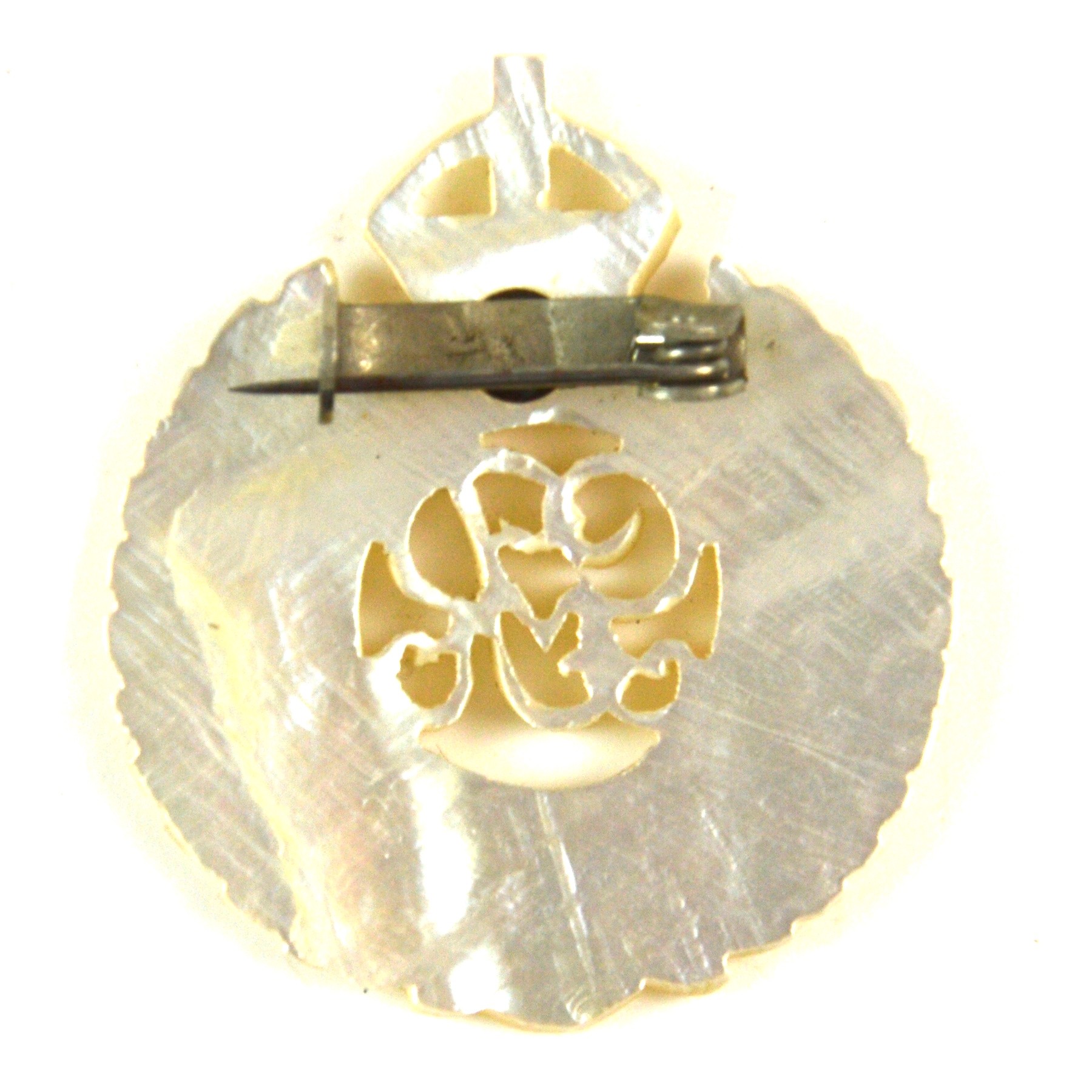 Very good overall condition with well-preserved mother-of-pearl surface and clear detailing. Fittings to the reverse remain intact and secure. No significant damage or repairs are evident.