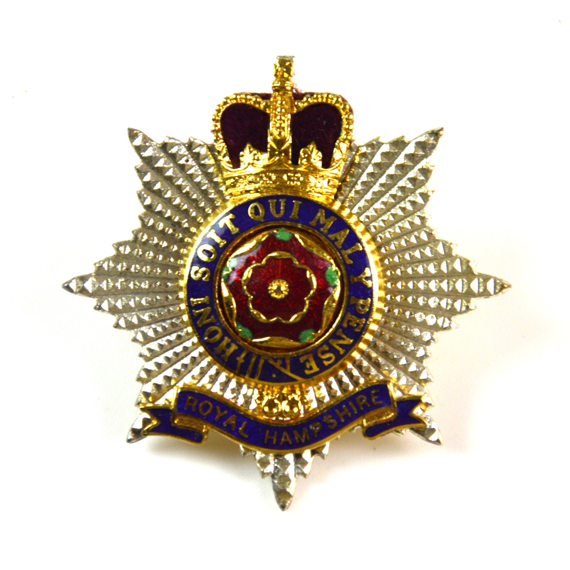 Royal Hampshire Regiment (1953-1992 Pattern) Silver Plate, Gilt and Enamel Cap BadgeRoyal Hampshire Regiment (1953-1992 Pattern) Silver Plate, Gilt and Enamel Cap Badge