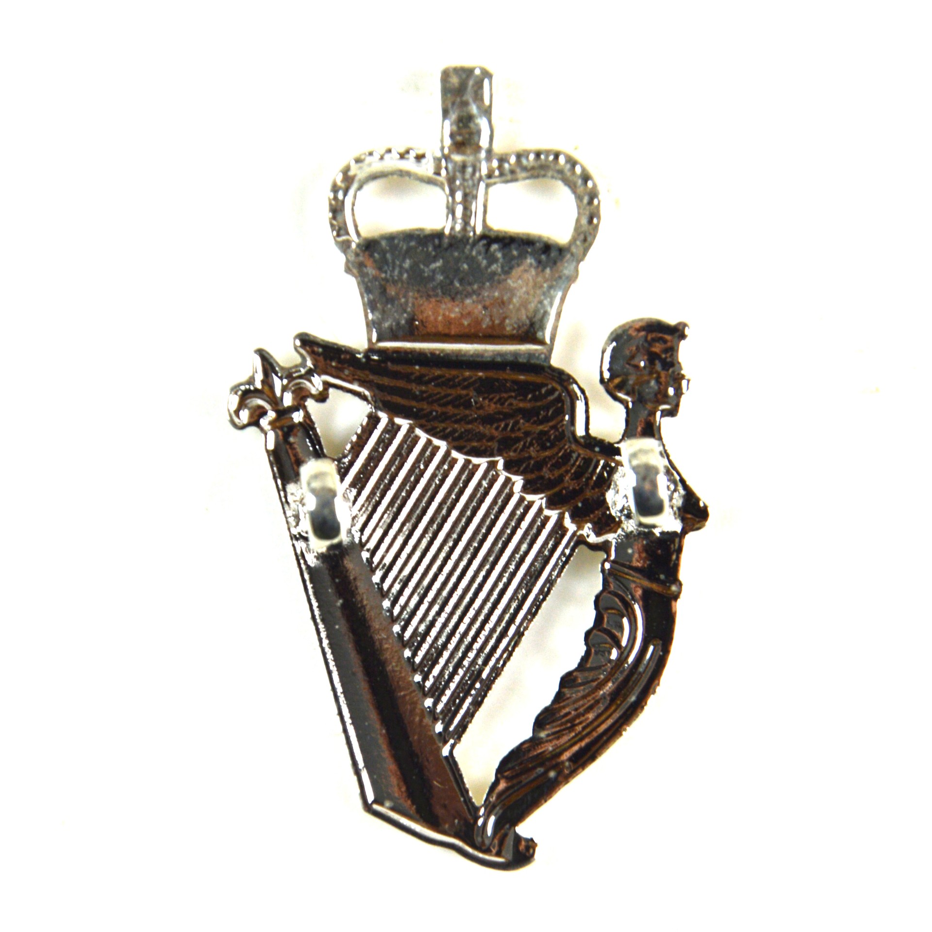 Silver plated ‘Harp of Errin’ with blacked strings, Queen’s Crown above