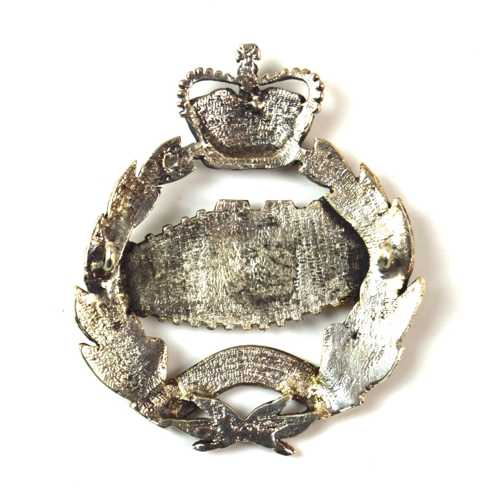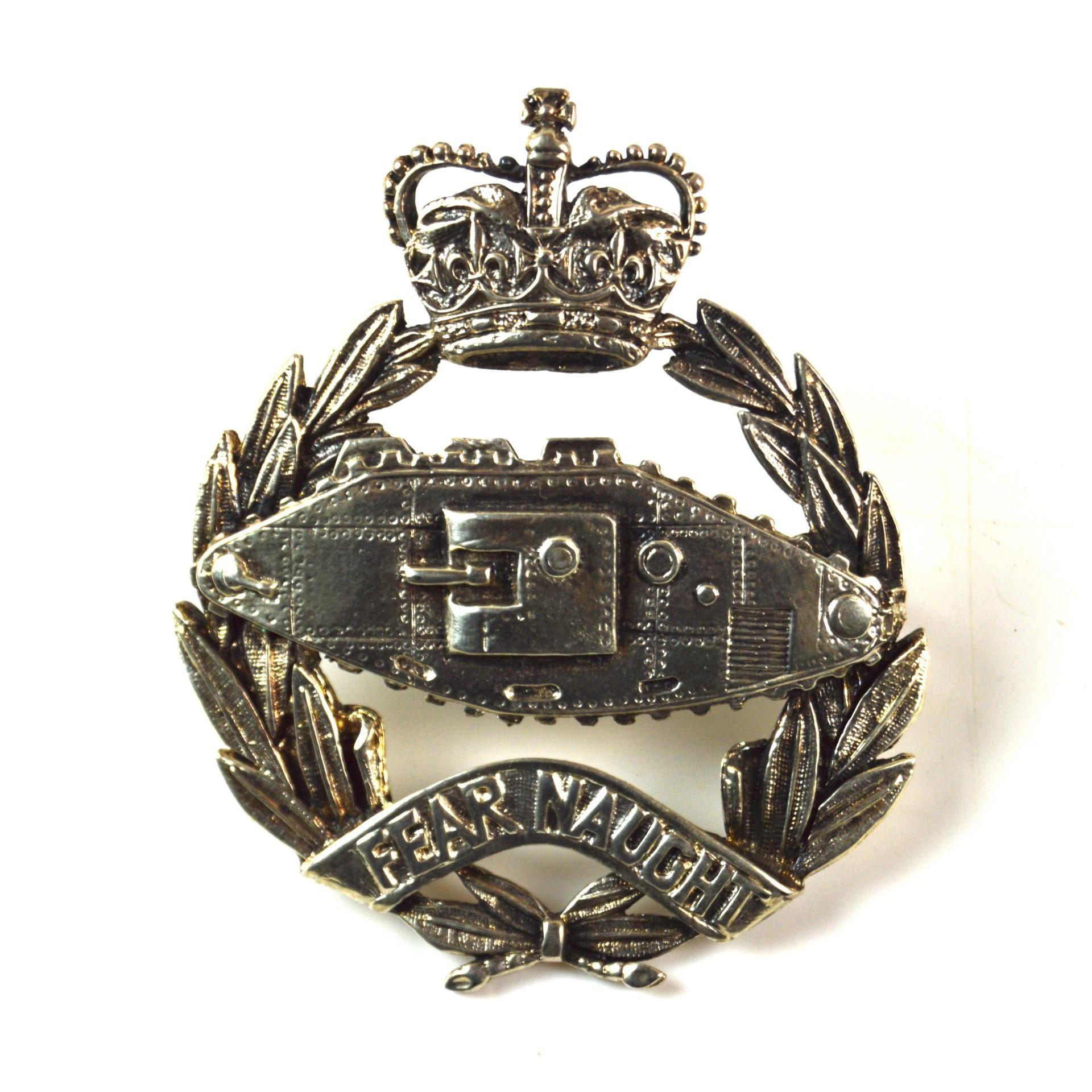 Royal Tank Regiment (1953-2022 Pattern) Cross Belt Badge, Queen’s Crown. Cast silver-plated badge in the cap badge design with east-west eyed lugs on the reverse