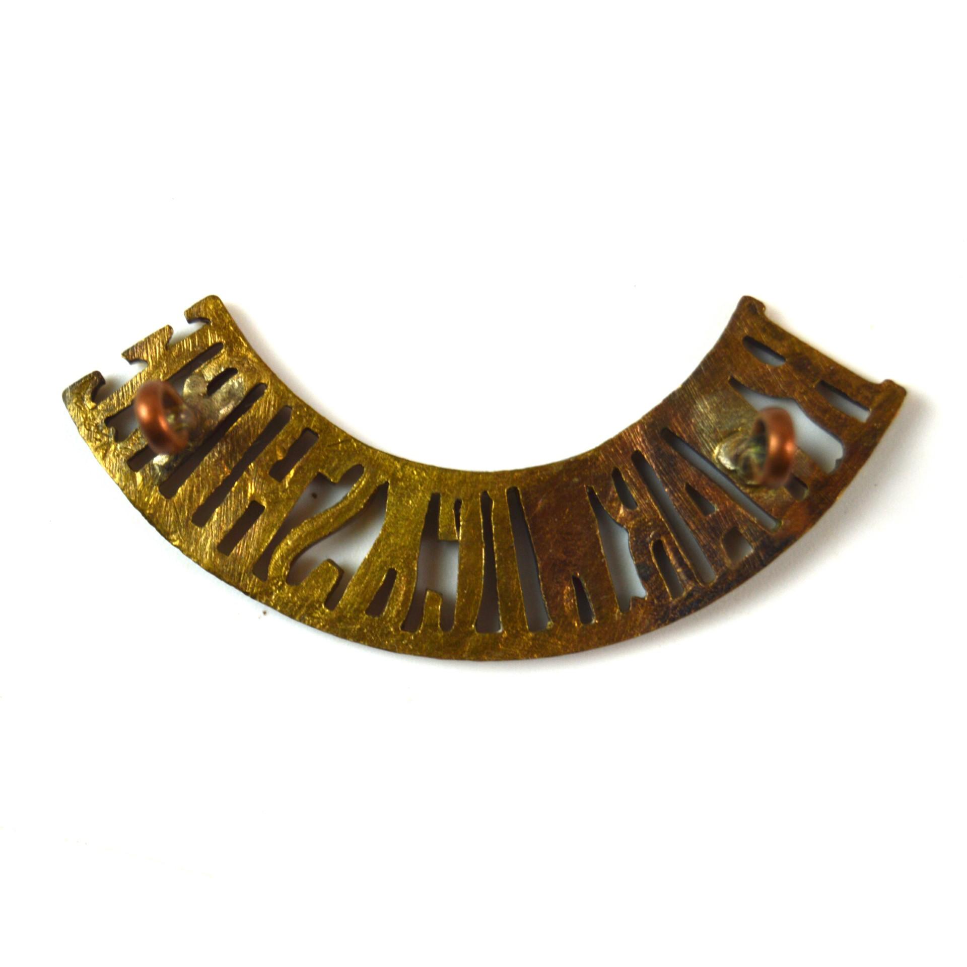 Royal Warwickshire Regiment (R WARWICKSHIRE) (1902-68 Pattern) Brass Shoulder Title. East-west eyed lugs.