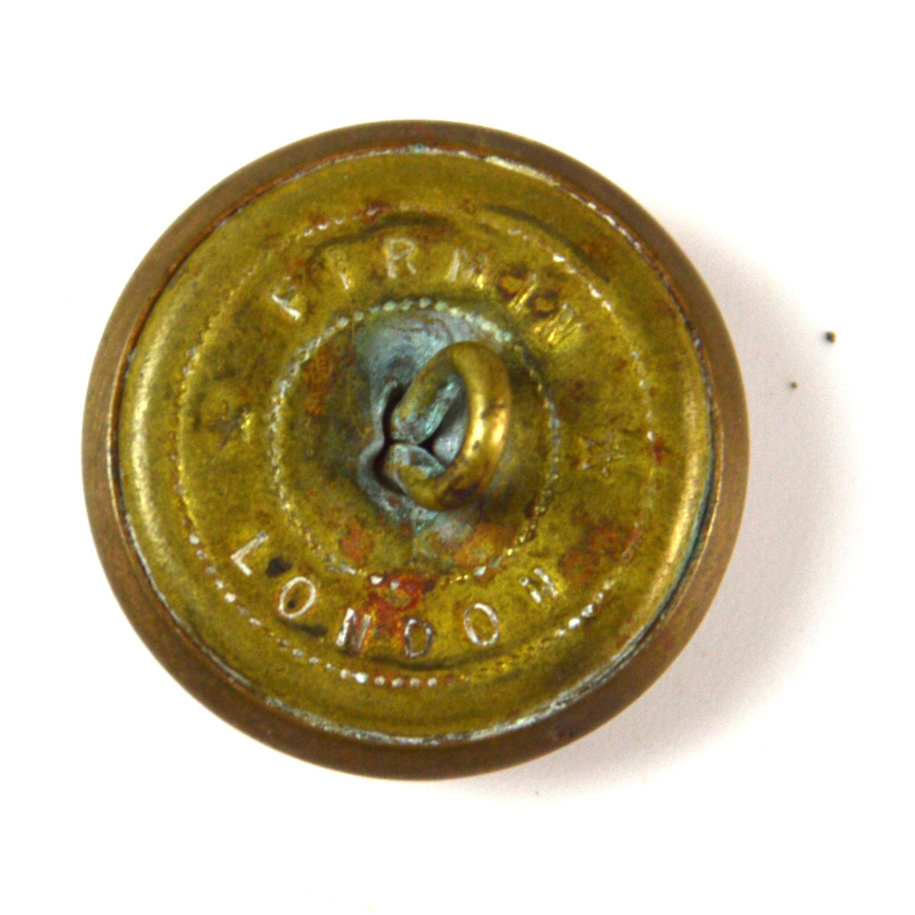 Manufactured in brass, consistent with South African Army rifle regiment uniform button production of the post-1903 period, this 25mm example provides a well-defined representation of the Duke of Edinburgh’s Own Rifles regimental device. Duke of Edinburgh’s Own Rifles buttons are collected as examples of South African colonial and Active Citizen Force militaria, uniform accessories of the traditional Cape Town volunteer regiments, and regimental hardware associated with the oldest volunteer regiment of the Cape Colony.