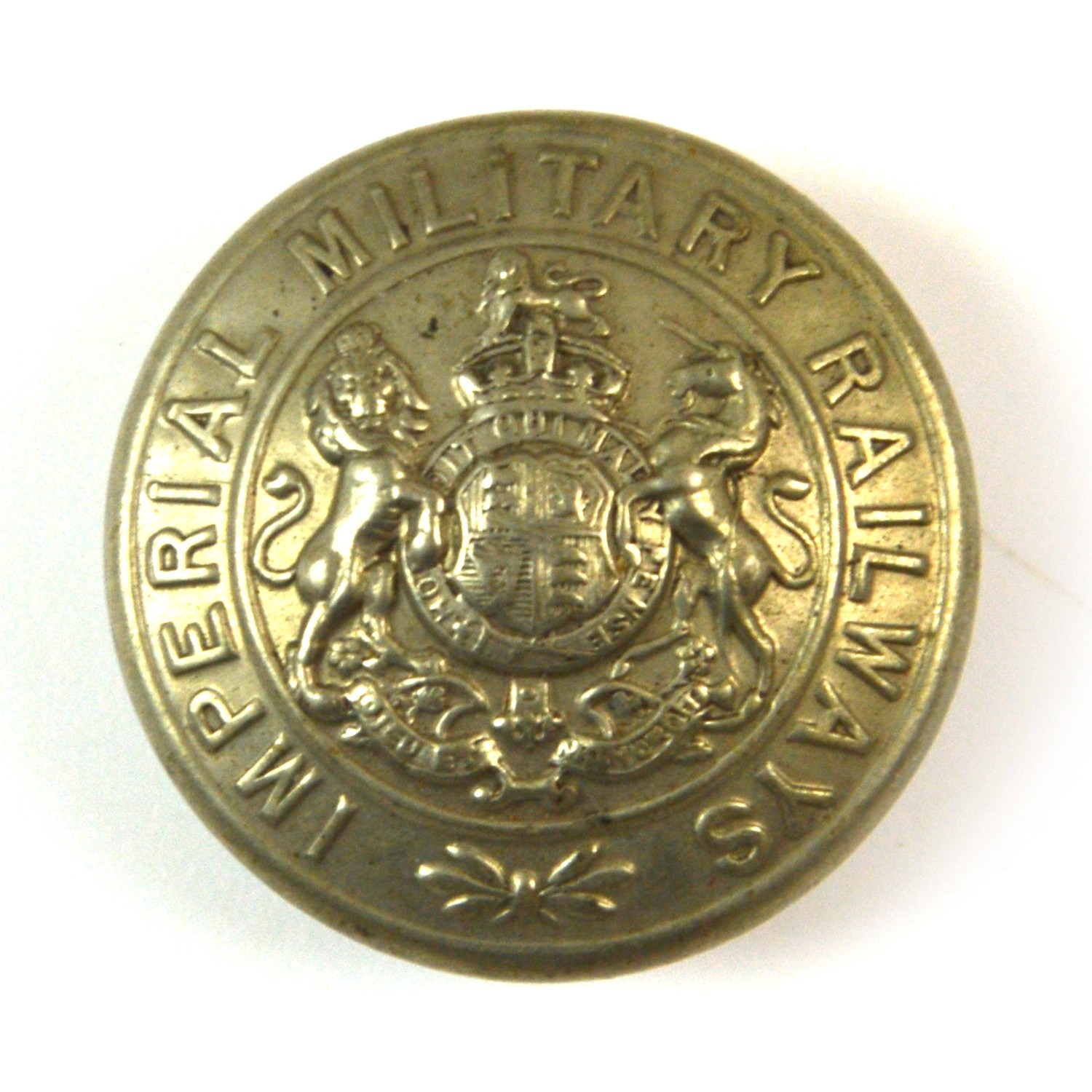 South African Imperial Military Railways uniform button of the 1898–1902 pattern, associated with the British-operated railway system established during the Second Boer War. This 24.5mm button features the Imperial (Victorian) crowned Royal Arms with surrounding legend denoting “Imperial Military Railways,” all executed in white metal consistent with late Victorian railway and administrative uniform fittings.