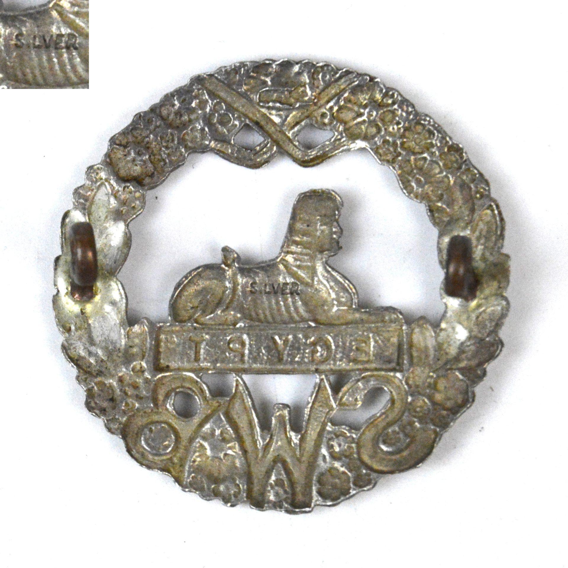 South Wales Borderers Silver (marked on reverse) Cap Badge with east-west eyed shanks