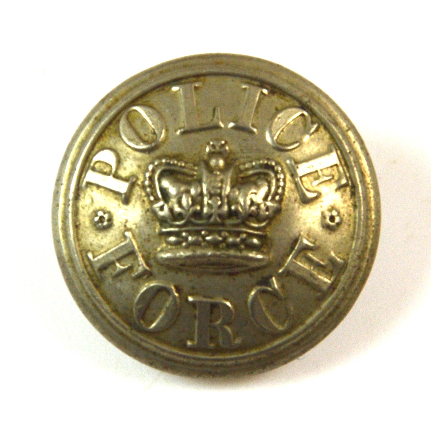 An authentic military button of the Police Force General Service Greatcoat Button, Kings Crown (24mm). Of interest to the uniform insignia collector.