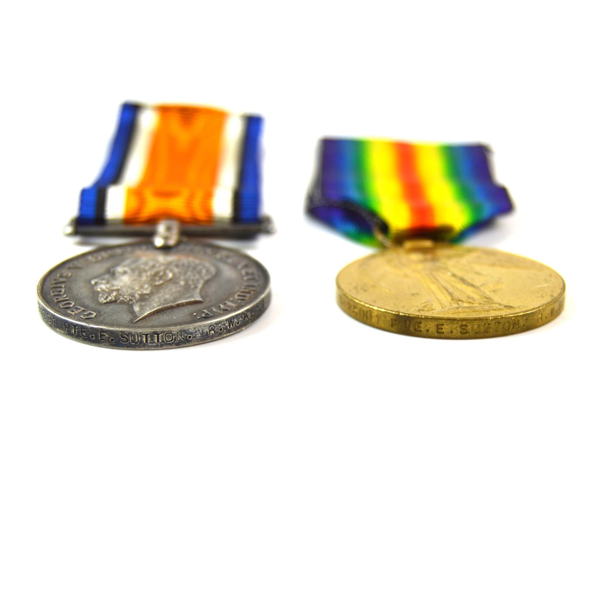 War and Victory Pair, Private Edwin Sutton, 1st Battalion, Royal West Kent Regiment (RWK)