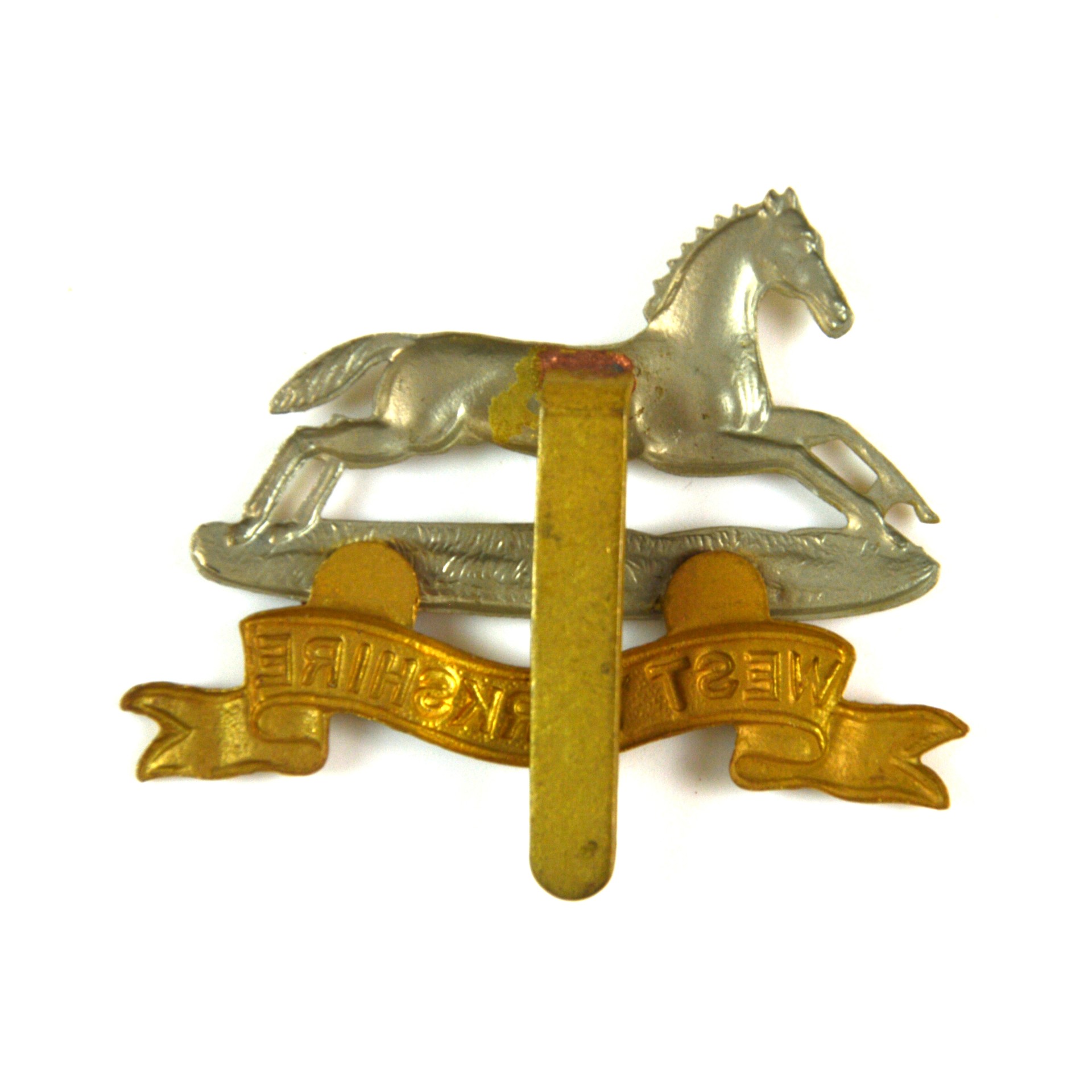 West Yorkshire Regiment (Prince of Wales’s Own) cap badge produced as a restrike of the pattern worn by the West Yorkshire Regiment (Prince of Wales’s Own) of the British Army. This British Army infantry cap badge displays the recognised insignia of the regiment in clear relief, incorporating the White Horse of Hanover as the central device, beneath the device appears a scroll bearing the regimental title”West Yorkshire”, arranged in a balanced composition characteristic of traditional British Army line infantry headdress insignia.